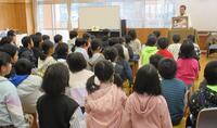 熊本南病院の院長先生においでいただき、6年生に「がん教育」をしていただきました。スライドを使いながら、具体的に分かりやすく話をしていただきました。要所要所でクイズがあり、それに対して全員が答えるとともに、楽しいやりとりがあって、あっという間の時間でした。がん予防のポイントは「検診に行くこと」です!