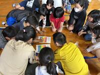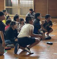 今日の「かかわりタイム」は、全校児童が体育館に集まって縦割り班対抗ビンゴゲーム大会。ステージ上のスクリーンに映し出される番号を、集中して、ときには両手を合わせて祈るように見ています。出た数字が自分たちの班のカードにあるか、頭がぶつかりそうになるくらい近寄って、みんなで確かめています。ビンゴになった班は大喜び。賞品をもらって、また、笑顔。楽しい活動でした。まさしく「笑顔いっぱい 伸びやかな」砥用小の子ども達です。運営委員会のみなさん、ありがとう!