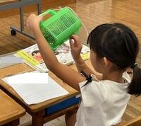 10月2日(水)、小雨が降り続いています。昨日とは打って変わって涼しい(半袖では肌寒く感じる)一日です。6年生教室では、集中して絵を描いていました。し~んとしています。さすが6年生です。下絵が細かい!一本一本の線を丁寧に丁寧に描いて色をのせていっています。担任は、一人一人に描き方や色ののせ方についてアドバイスをしていました。一方、1年生教室では、「校長先生~。見てください!」、「校長先生~。昆虫がどこにいるか分かりますか?」。次から次に、声がかかります。虫かごに入っている捕まえてきた昆虫をじ~っと観てプリントに気付いたことを書いています。担任は、昆虫図鑑が手放せません。子ども達の質問に一所懸命に図鑑を見ながら対応していました。意欲的に学習している子ども達の姿を見ると、笑顔になります!