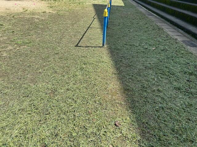 10月5日(土)朝、用があって学校に来ました。すると、何やら運動場がすっきりしています。PTA親子レクレーションのために来ていた職員から、「卒業生の保護者さんが、早朝から小雨が降る中に、刈り払い機で草を刈られていた」という報告を受けました。また、「『あとは校長先生、よろしく』と伝えてください」ということでした。ありがとうございます。感謝、感謝です!
