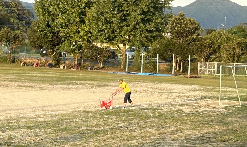 16時過ぎ、刈り払い機の音がするので運動場を見てみると、草刈りをしていただいています。かなり草が伸びていたので、「もういかん」と思い、雨が降る前に、火曜日の午後、ブランコからシーソー付近の草を刈ったのですが、その時にも、一緒に草を刈っていただきました。そして、今日もです。なかなか草刈りが追いつきません。ありがとうございます。とっても助かります!