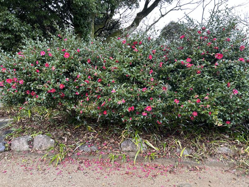 校長室の窓から椿の花が見えます。これまでは、こんなに咲いていませんでしたが、今年は、たくさんのつぼみをつけ、きれいに咲いています。椿全般の花ことばは「控えめなやさしさ」、「誇り」。赤い椿の花ことばは「控えめなすばらしさ」、「気取らない優美さ」、「謙虚な美徳」です。