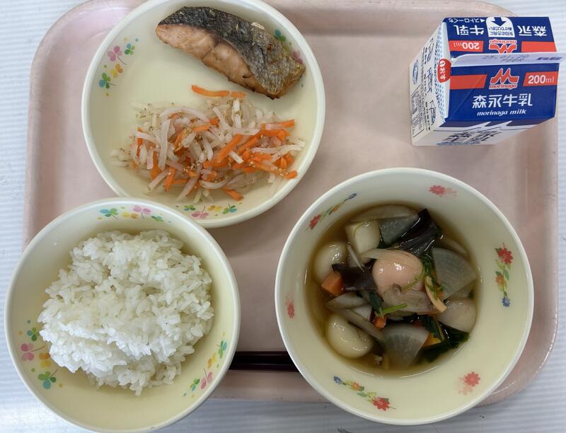 3学期スタートの給食は「ごはん、おぞうに、さかなのこうみやき、こうはくなます」です。本格的な寒さの中、安全・安心で美味しい給食を作っていただきます。1月20日(月)から24日(金)は、本校の給食週間。食に関する学習を行います。学校給食週間とは、「学校給食 の意義や役割について児童生徒や教職員、保護者、地域住民の理解と関心を深めるための週間。 1950年 (昭和 25年)『全国学校給食週間の開催』により毎年 1月24日 から 1月30日 と定められ、 1951年 (昭和26年)から実施されている」ものです。