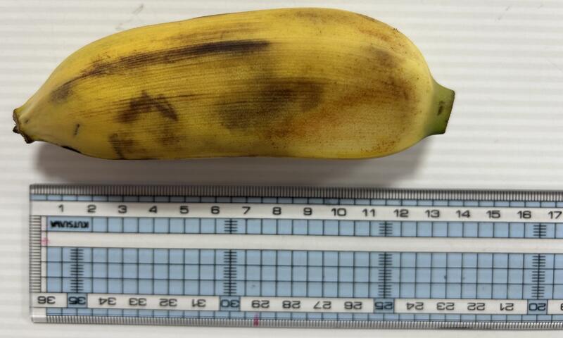 朝から、バナナが実っている状態のものを、木枠を組んで吊るして持ってきていただきました。給食の時間に各学年の教室に持っていき子ども達に完熟のバナナを見せました。アイスクリームバナナという品種だそうで、見た目は、普段、私たちが目にするバナナとあまり変わりありませんが、比べてみると、実が小さく太いのが特徴です。子ども達から驚きの声がたくさん出ていました。