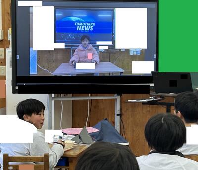 第1回の放送は、令和6年12月11日に行いましたが、待ちに待った第2回の放送は、なんと、令和7年2月12日(水)から14日(金)の三日間連続で、給食の時間に各教室に配信しました!今回も、メディア委員会の子どもたちが、取材,動画編集し、ニュースキャスター役をしての配信です。12日(水)は、3年生を取材しての「縄跳び名人」,13日(木)は、5,6年生を取材しての「体が柔らかい人」,14日(金)は、5年生を取材しての「イラスト係が描いた絵の紹介」でした。配信の最後は、三日間ともニュースキャスター役の子どもとの「ともちっ子じゃんけん」。盛り上がっていました。