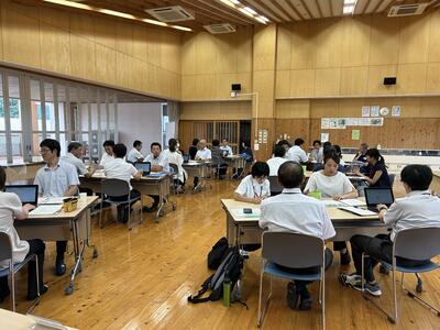 6月26日(水)5校時、砥用中学校区小中連携授業改善研修を本校で行いました。5校時に、4年生の子ども達の算数の学習の様子を見ていただいた後、研究会を行いました。授業終了後、子どもから「疲れた~」という声。教室に入りきらないほど多くの先生方が参観される中で、緊張しながらも集中して学習したあとの正直な気持ちの声に、近くにいた先生方が笑顔になりました。