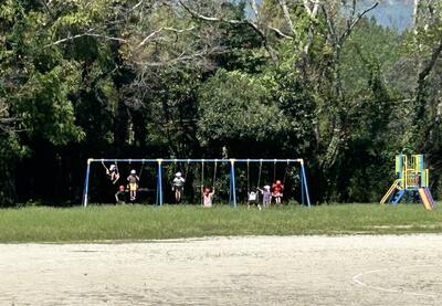9月27日(金)昼休み。学校敷地周辺を点検・確認してまわっていました。掲揚台付近を歩いていると、遠くから「校長先生~」という子ども達の声が聞こえてきます。「どこから?」と思い、辺りを見回すと・・・。運動場のブランコで遊んでいる子ども達でした。手を振ると、「校長先生~。来てくださ~い」という声。今度は、両手で大きく手を振ると、「校長先生~」と何度も返してきます。嬉しいですねぇ。ありがたいことです。今日の業間は「かかわりタイム」でした。縦割り班での活動です。どんな活動をしているのか、各教室を見てみると、じゃんけんして勝つと順に進化していくゲームやいす取りゲームをしていました。縦割り班担当職員も子ども達と一緒に参加していました。どの教室も大賑わい。子ども達にも職員にも笑顔が溢れています。