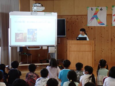 学校運営協議会と人権擁護委員の皆様をお迎えし、「心のきずなを深める集会」を行いました。人権学習で学んだことや考えたことを、2年生は劇を取り入れ、6年生はプレゼンで発表しました。2年生、6年生、それぞれ立派な発表でした。また、他の学年の子供たちも熱心に発表を聞き、自分の考えや感想を積極的に発表することができました。