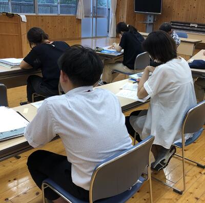 宇城教育事務所から指導主事においでいただき、「熊本の学び推進プラン」に則った授業について、みっちり勉強しました。15時00分から16時00分の90分間、集中して取り組みました。熱心に研修に取り組んでいる様子が写真からも伝わってくると思います。