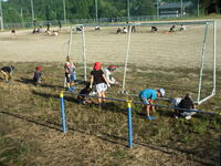 夏休み最後の日、日曜日の早朝から、保護者と子供たち、職員で、運動場はもちろん、通学路、駐車場や図書館周辺、教室棟の間の除草と枯葉掃き、清掃等々を行いました。早朝とはいえ、暑い中に大変お世話になりました。