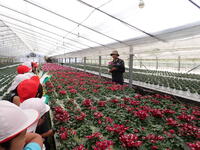 3年生は「農家の仕事」の学習として、シクラメンを育てていらっしゃる農家さんのビニールハウスを見学に行きました。「シクラメンをきれいに作る工夫は何か」、「農家の仕事で大変なことは何か」等、たくさんの質問に答えていただいたり、実際に肥料をやるときに使う道具を触らせていただいたりしました。学校へ戻ってから「シクラメン農家の秘密」をまとめました。お忙しい中に見学させていただきありがとうございました!
