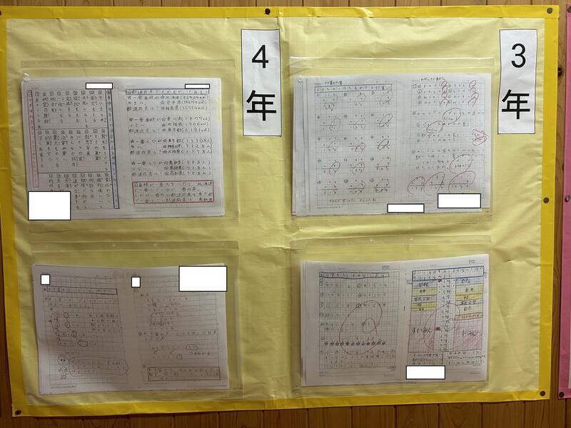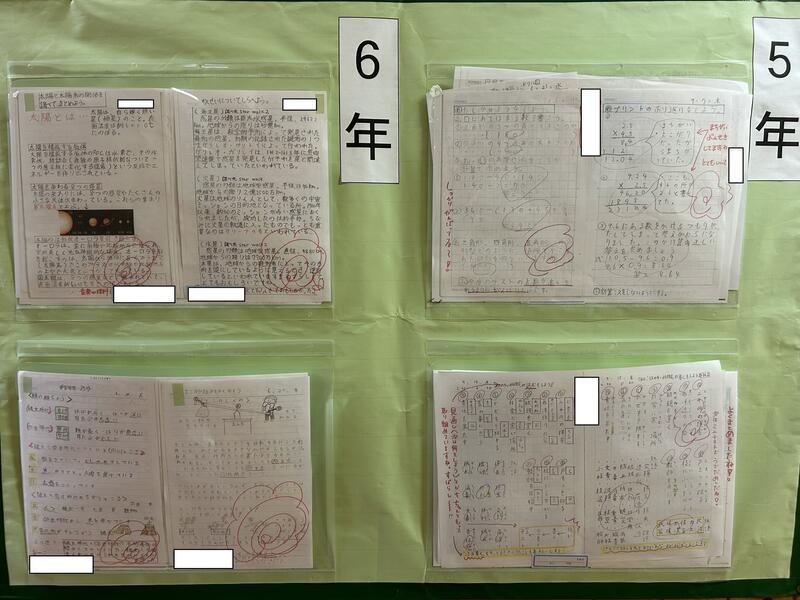 子供たち一人一人が、学習の定着度合いを振り返り、自分で内容を決めて学習をする習慣を身に付けさせたいと考えて取組を続けています。どのような学習をしてきたか紹介するコーナーを廊下掲示スペースに設け参考となるようにしています。1年生から6年生まで、それぞれの学年で、よく考えて学習することができています。