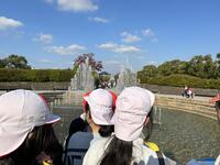 お腹いっぱいになったあとは、しっかり学習です。語り部さんのお話を聞いて、フィールドワーク、平和集会では、全員で「平和の誓い」を発表し、平和への思いをこめて「平和のたね」を歌いました。原爆資料館見学です。戦争の悲惨さと平和のありがたさを実感しました。