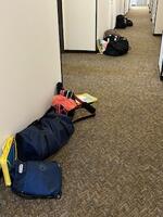 修学旅行2日目の朝、6時30分という早い朝食でしたが、パン派とごはん派、両方派と、それぞれでしっかりと朝食を取りました。朝食後の部屋の片付け。すごいです。荷物が廊下に整然と並べられています。退所式後、記念撮影をして出島へ出発しました。
