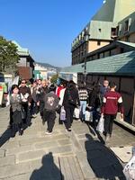 出島見学、当時の生活を想像し見学して回りました。家の軒が低く2階へ上がる階段が急だったり、土間があったりと、現代の家との違いがたくさんありました。出島の家賃の高さに驚きました。神学校も見学できて良かったです。