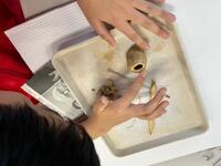 長い時間のバス移動、良い休憩時間になりました。そして、到着したのは吉野ヶ里遺跡。昼食のハンバーグ定食を食べて、まずは、楽しみにしていた土笛作り。息を吹き入れる穴を空け、厚さをちょうどよい具合にするのが難しかったです。笛、音が出るといいなぁ!