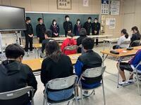 12月12日(火)砥用中学校の体験入学。生徒会の先輩に校舎を案内してもらい、中学校の先生と一緒に、国語と音楽の学習をしました。最初は、少々、緊張気味の様子でしたが、ちょうど掃除の時間で、行くところ行くところで挨拶してもらい、また、優しい説明や対応、また、楽しい国語と音楽の学習をすることができ、中学校生活への期待が膨らみました。