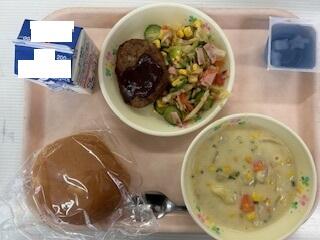 12月14日(木)の給食は、1年生のリクエスト給食です。献立は、セルフハンバーガー、米粉コーンスープ、手作りしゅわしゅわゼリー、それと、もう一つが・・・。10月に国語の学習で「サラダで元気」(お母さんが病気になったので、りっちゃんは、何かしてあげたいと考え、サラダを作ります。猫、犬、すずめ、あり、馬からアドバイス。シロクマからは電報で、そして、象も飛行機に乗ってきます。みんなが手伝ってくれたおかげで、おいしいサラダができました。サラダを食べたお母さんは、元気になりました」というお話です)の学習をし、自分たちで元気になるサラダを考えました。リクエスト給食のもう一つの献立が「りっちゃんの元気サラダ」です!どんなサラダか、数日前から、とても楽しみにしていました。食べてみると、とってもおいしかったです。そして、元気になりました!