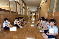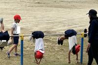 4月26日(金)、曇り空、肌寒く感じる朝です。2時間目、1年生の学習は、体育「てつぼうあそび」。運動場で一所懸命頑張っています。職員室まで元気な声が聞こえてきます。様子を見に行くと・・・。「校長先生~。見てくださぁい!」というたくさんの声。次から次に技を披露してくれます。「わぁ、すごいねぇ。上手~!」、拍手をすると満面の笑顔に。1年生は元気です!(数日前に草刈りしていてよかったぁ)