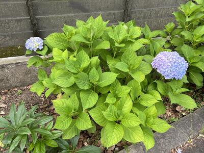 職員駐車場の花壇に、かわいい,大きな紫陽花(給食調理員の方が育てていらっしゃいます)が咲いていました。紫陽花の花を見ると、心が癒されます。
