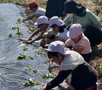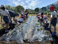 5月29日(水)1校時、1,2年生が芋の苗を植えました。昨日の雨から一転して「芋の苗植え日和」となりました。大きな芋が収穫できると良いですね。楽しみです!