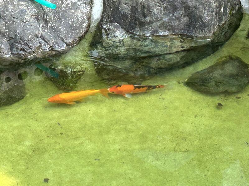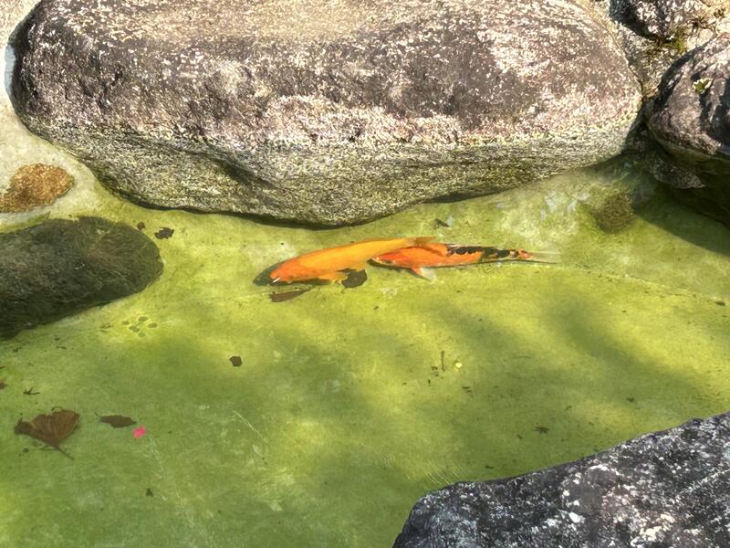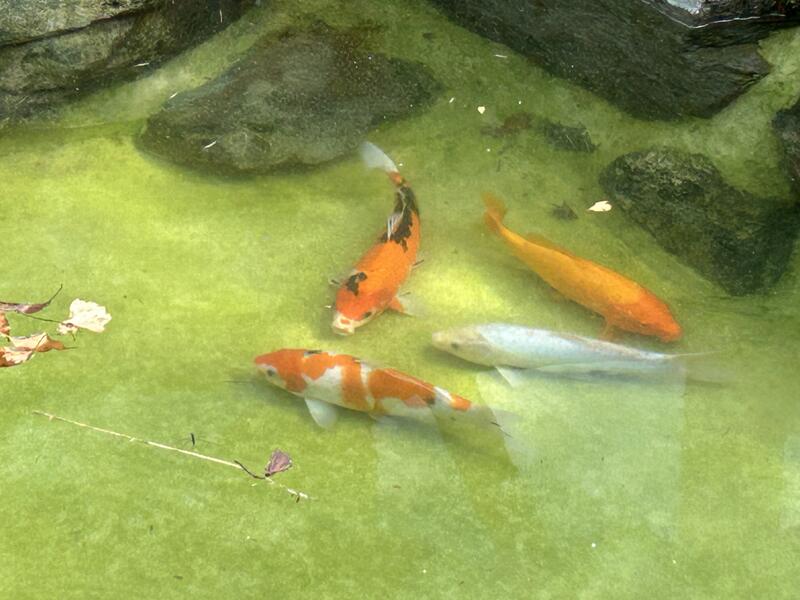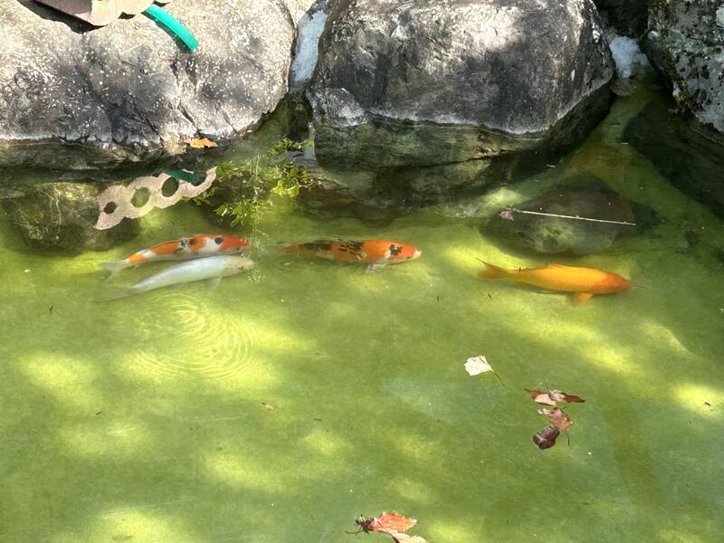 池の改修工事のために、今まで他校に避難していた鯉も、無事に戻ってきて、合計4匹、元気に泳いでいます!池の清掃もありがとうございます。