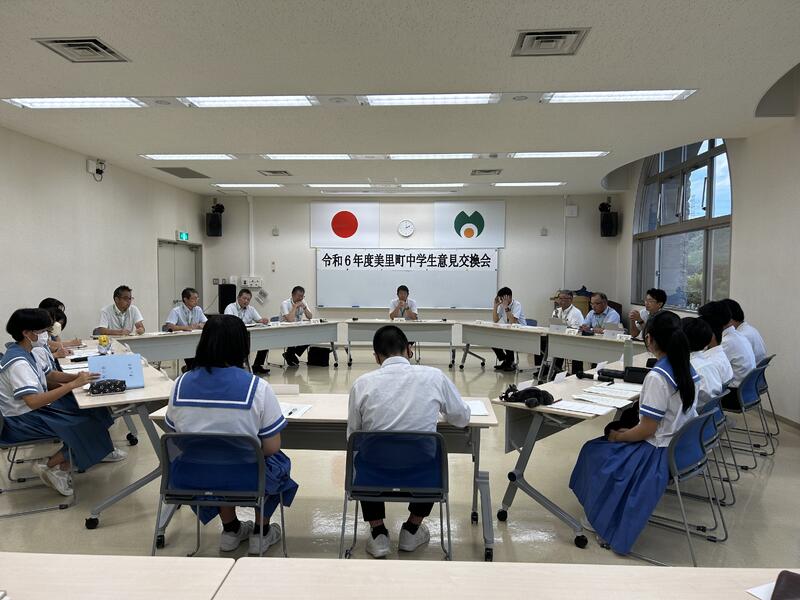 8月20日(火)14:00から、美里町役場中央庁舎会議室で「美里町中学生意見交換会」が行われました。町長,副町長,教育長,関係各課の課長や係長の方々と、中央中と砥用中の生徒達とでの意見交換会。中学生の質問や提案に対して、丁寧に分かりやすく対応していただきました。とても温かい和やかな雰囲気が感じられる会であり、また、生徒達も事前にしっかりと学習して質問や提案内容を考え、積極的に意見を述べている姿に感心しました。美里町の中学生、立派です!小学生も、中学生の姿をお手本にしていきます!