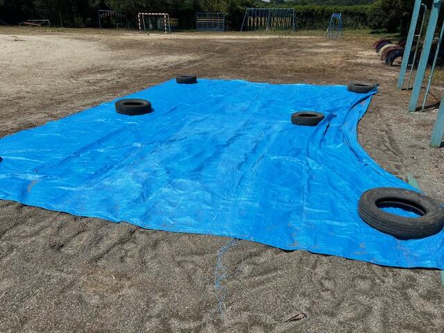 8月29日(木)2学期がスタートします。長かった休みも残りわずかとなりました。子ども達は、「早寝、早起き、朝ごはん」はできているでしょうか。まさかの「遅寝、遅起き、朝ごはん抜き」の生活になってはいませんか?心と体の準備を!職員は、互いに協力して、2学期のスタート準備を一つ一つ丁寧に進めています。日中、とても暑い中、汗びっしょりになりながら、各教室のカーテンの洗濯やエアコンフィルター掃除、校舎周辺の庭の草刈りをしました。また、陸上記録会幅跳びの練習に向け、砂場を耕して危険なものがないか確かめて消毒をし、ビニルシートで覆っています。