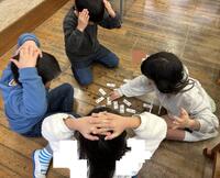 数日の間、2年生、掛け算の上り九九と下がり九九を、職員室等で職員をつかまえて一所懸命に言っていました。昨日、2年生の教室へ行ってみると、なにやら賑やかです。様子をうかがうと、掛け算カルタをしています。仲良く笑顔で、ルールを守りながら取り組んでいます。時折り、担任が、すでに取っている掛け算をわざと読み上げます。すると、「あれ?」、「ありませ~ん」、「それ、さっき〇〇ちゃんがとりました~」。楽しい学習の時間です。