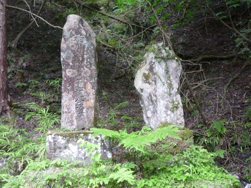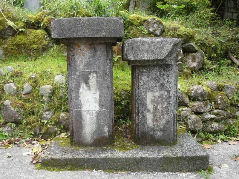 もしかしたら、と思いましたが、林道の開通記念碑と通電の記念碑でした。柏川集落出身の役場の方に聞いたら、平成19年の洪水でほとんどが流されてしまったということでした。情報ありがとうございました。