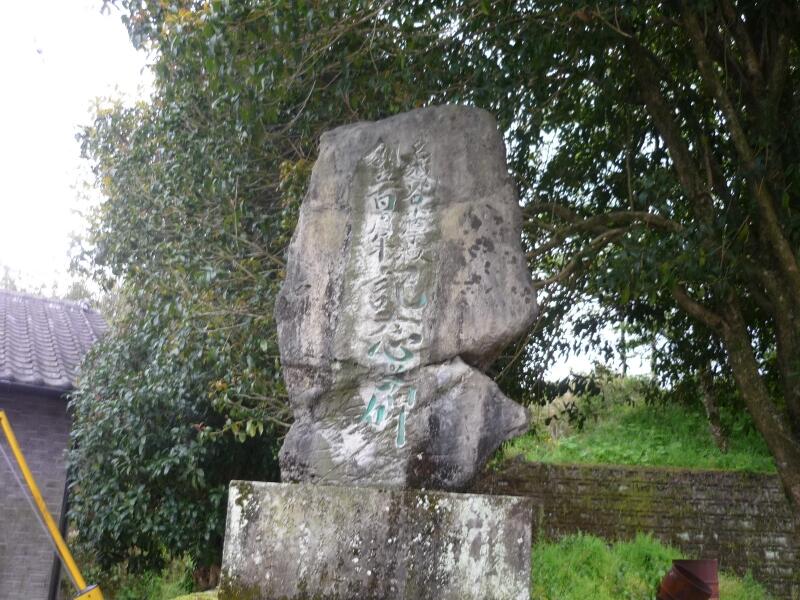 「公民館の隣の消防小屋のところたい。」とおっしゃっていました。敷地の隅に小さな記念碑がありました。