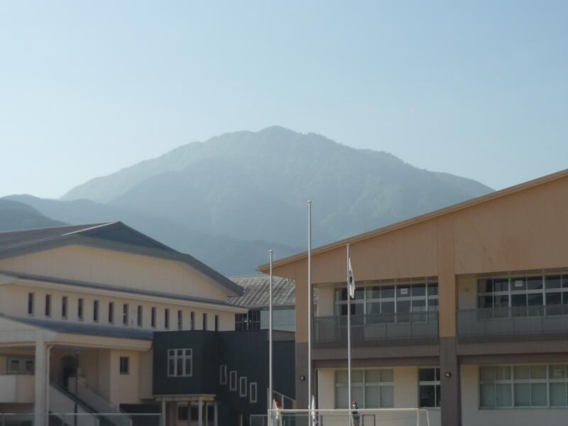 今日は、豊富小学校を紹介します。今は、筒川荘(高齢者コミュニティーセンター)になっています。涌井地区から行くと、筒川荘に続く道から甲佐岳が間近に見えます。