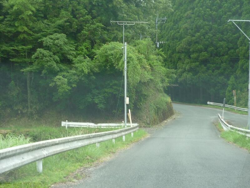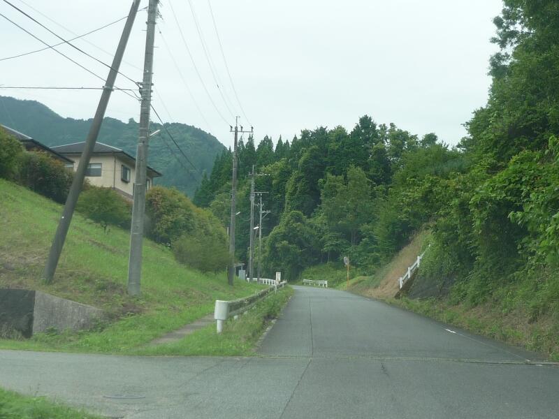道がやや狭くなります。これは、旧中央町の椿地区につながっています。その途中に…