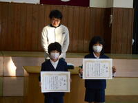 全員完走することができたことが素晴らしかったです。そして、なんと、「宣言タイム金賞(宣言タイムと±5秒以内)」を受賞した子がいました。3年生児童です。これまでの練習に全力投球してきたからこそ、本番のタイムを予測し、設定できたのではないでしょうか。素晴らしい功績です!