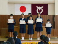 大会は2部に分かれて行い、それぞれのグループの勝者計14名には、都呂々小創立150周年記念クリアファイルと多機能ボールペンを贈呈しました。受賞した皆さん、おめでとうございます。