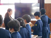 日頃、給食でお世話になっている苓北町役場農林水産課のお2人が都呂々小に来てくださいました。ランチルームにて、「お米クイズ」を楽しみ、一緒に給食を食しました。お米について、給食についての会話などをしながら、楽しいひとときとなったようです。