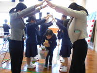 学校かくれんぼは、入ってはいけない教室等はあったものの、校舎全体を使っての大規模かくれんぼに、大盛り上がり!かくれていて、鬼に見つかった子も鬼になるという「増え鬼」スタイル。7分間という時間制限のかくれんぼを2回実施しましたが、最後まで隠れきれたのは、なんとR先生!