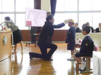 4時間目に、創立150周年記念で作成したカルタを使って、校内カルタ大会を実施しました。日頃から都呂々小を応援してくださっている方々に感謝の気持ちを伝える場としたいという思いから計画したものです。当日は、保護者・高齢者大学・地域の方々25名ほどの参加をいただき、小学生も合わせて総勢50名ほどでのカルタ大会となり、都呂々小ホールは熱気あふれる空間となりました。