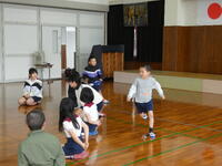 はじめのことば、校長先生のお話、おむかえのあいさつ、1年生と新しい先生方の自己紹介、ハンカチ落とし、なかよしじゃんけん、おわりのことばといったプログラムでした。