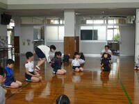 かくれんぼの後は、活動場所を体育館に移し、ミニバスケットボールを楽しんだ子供たちでした。
