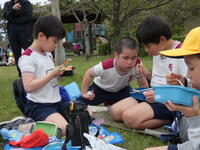 お待ちかねのお弁当タイム。それぞれ、お家の方の愛情たっぷり弁当に舌鼓。