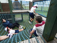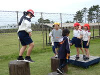 そして、苓北火力発電所ふれあい公園へ。1年生の子供たちも6年生のお兄さん、お姉さんたちと一緒にしっかり歩くことができました。
