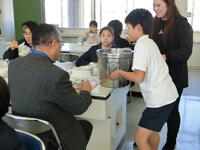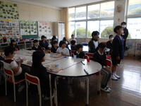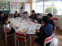 日頃、給食でお世話になっている苓北町役場農林水産課のお2人が都呂々小に来てくださいました。ランチルームにて、「お米クイズ」を楽しみ、一緒に給食を食しました。お米について、給食についての会話などをしながら、楽しいひとときとなったようです。