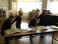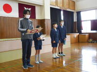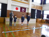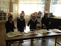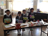 都呂々小の4人は、国語で学んだ「やくそく」の音読劇を披露。皆、ナレーションとあおむしの役などの声を使い分けするなどし、とても上手に音読で表現していました。お話の様子がより伝わるように、ジェスチャーも工夫してあり、エンターテイメント性の高い仕上がりでしたよ。その後、「ジングルベル」の曲を、それぞれ鈴を鳴らしながら歌った子供たち。堂々とした姿、素敵でした。
