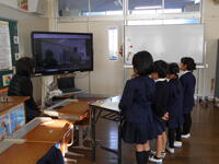 12月23日の1校時、1・2年生は、教良木小とオンライン交流をしました。