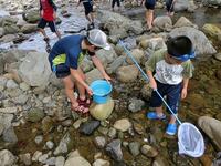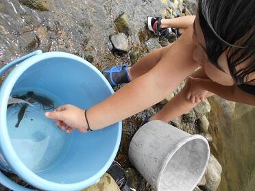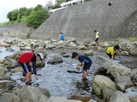 学校の隣の都呂々川で楽しく遊びました。