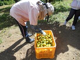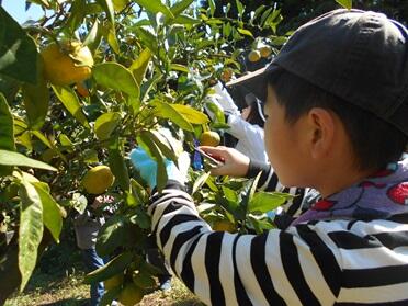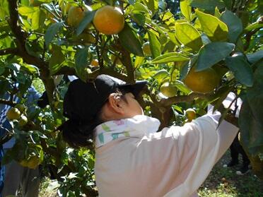 地域の方にコツを教えてもらいながら、みかんを傷つけないように収穫しました。