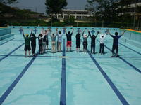 休校期間中に、苓北町給食調理場の皆さんの力を借りてプール掃除をしました。