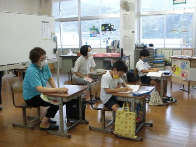 複式で学習しています。先生がいないときは自分たちで学習を進めます。