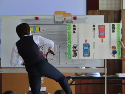 1年生と3年生が代表で横断歩道を渡ってみせてくれました。